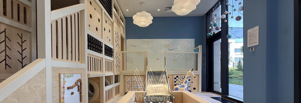 Главное о локации. Комплекс расположен в Хорошёво-Мнёвниках, на берегу Москвы-реки. Через реку — парк "Крылатские холмы" с велосипедными трассами и Гребной канал с бассейном и спортивными залами. В десяти минутах — Москворецкий дендропарк и Тереховский пруд для прогулок и пикников. Для семей рядом школа 1517, лицей 1560 и детский сад "Разные детки". За 15 минут на машине можно доехать до ТТК и Москва-Сити, а пешком дойти до метро "Терехово" за 10 минут. Таким образом, район совмещает жизнь у воды, доступ к зелёным массивам и быструю связь с центром.