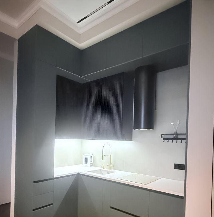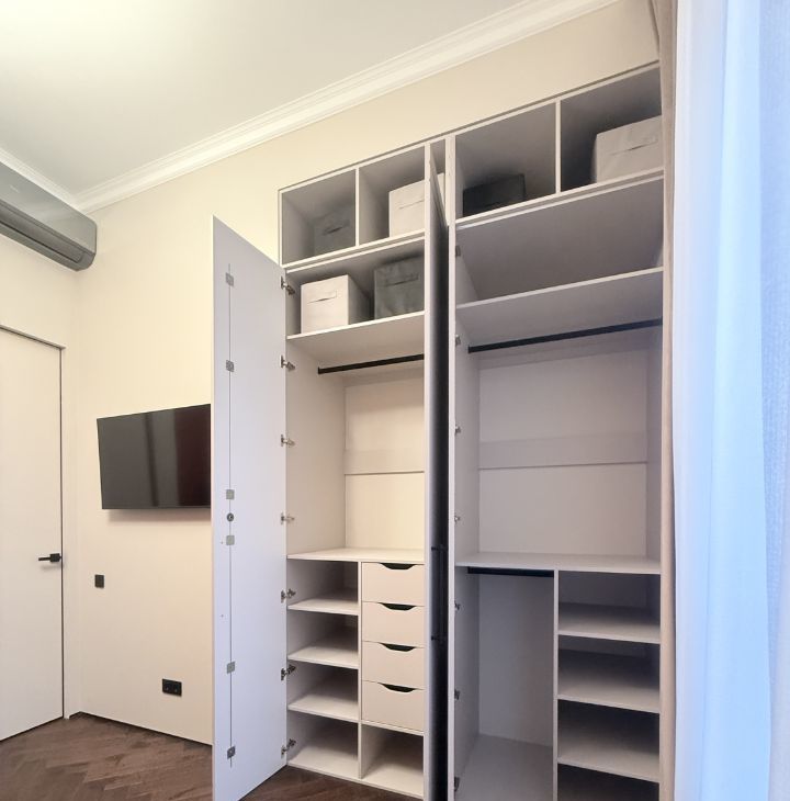 Квартира оборудована множеством мест для хранения. Вся мебель разработана по индивидуальному проекту. Множественные световые решения для создания атмосферы по настроению.