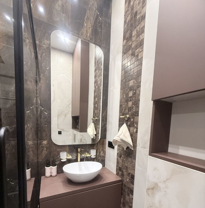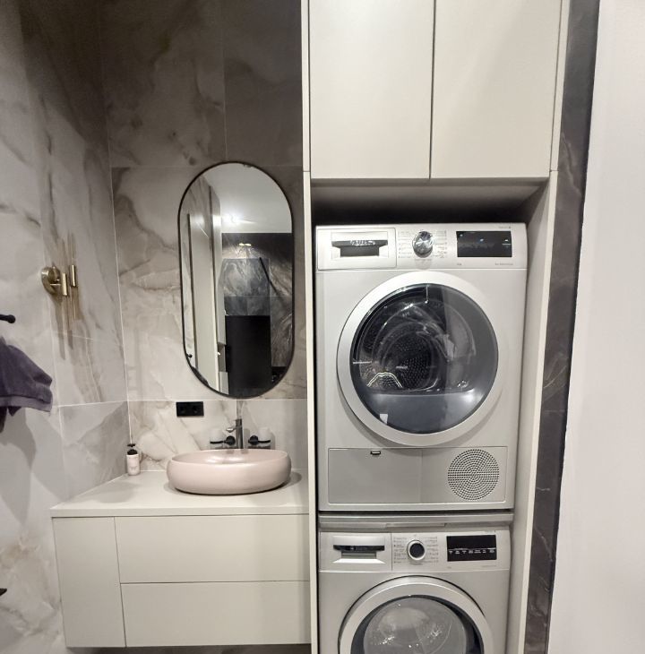 Два полноценных санузла (в большом санузле полноценная ванна, стиральная и сушильная машины Bosch), водонагреватель, система от протечек, фильтры для воды.