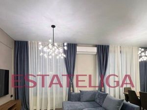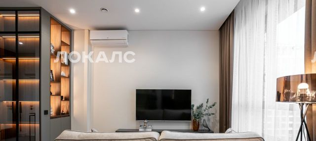 Качественная дизайнерская мебель и вся необходимая новая техника (2 телевизора, кондиционер, варочная панель, духовой шкаф, холодильник, микроволновая печь, винный шкаф, посудомоечная машина, стиральная и сушильная машины, роутер). Предусмотрено много мест для хранения: шкафы в коридоре, кухне, гостиной, спальне.
