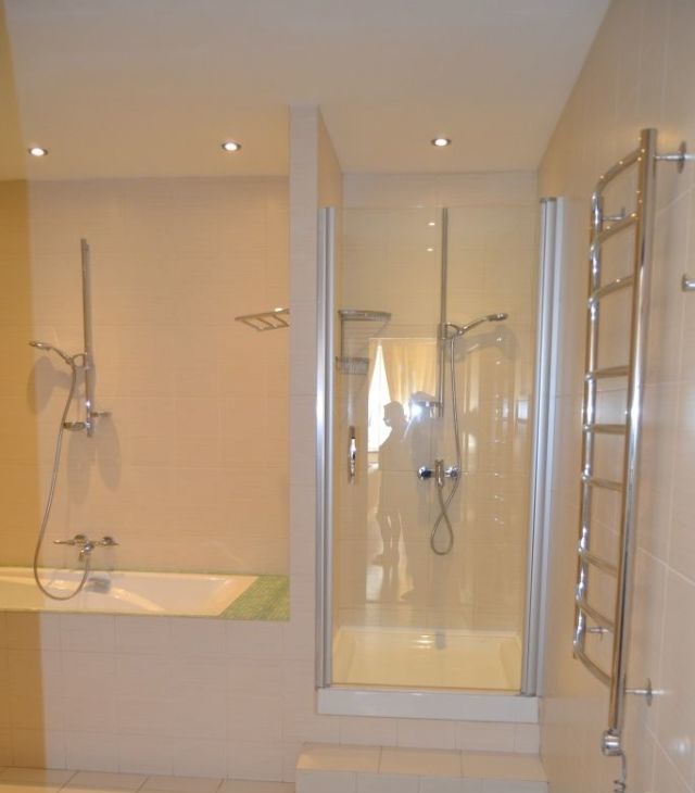 Кондиционирование по квартире. Два санузла (один с ванной и душевой кабиной, другой с душевой кабиной). Большая застекленная лоджия. Гардеробная со шкафом.