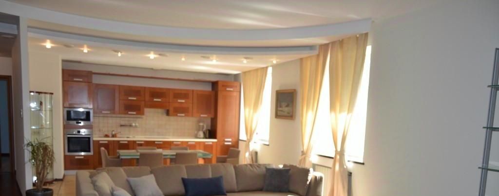 Стильная, уютная квартира общей площадью 157 метров. Планировка: две спальни (в одной гардеробная комната) и огромная кухня-гостиная. Вся бытовая техника, включая посудомоечную машину.
