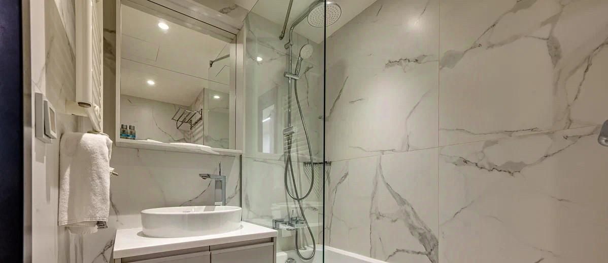 В квартире сделан современный евроремонт. Просторные комнаты обставлены стильной мебелью, которая идеально дополняет интерьер. На кухне вы найдёте всё необходимое: от посудомоечной машины до холодильника. В каждой комнате установлен кондиционер, в каждой комнате — телевизор. Ванная комната оборудована ванной, что поможет расслабиться после трудового дня.