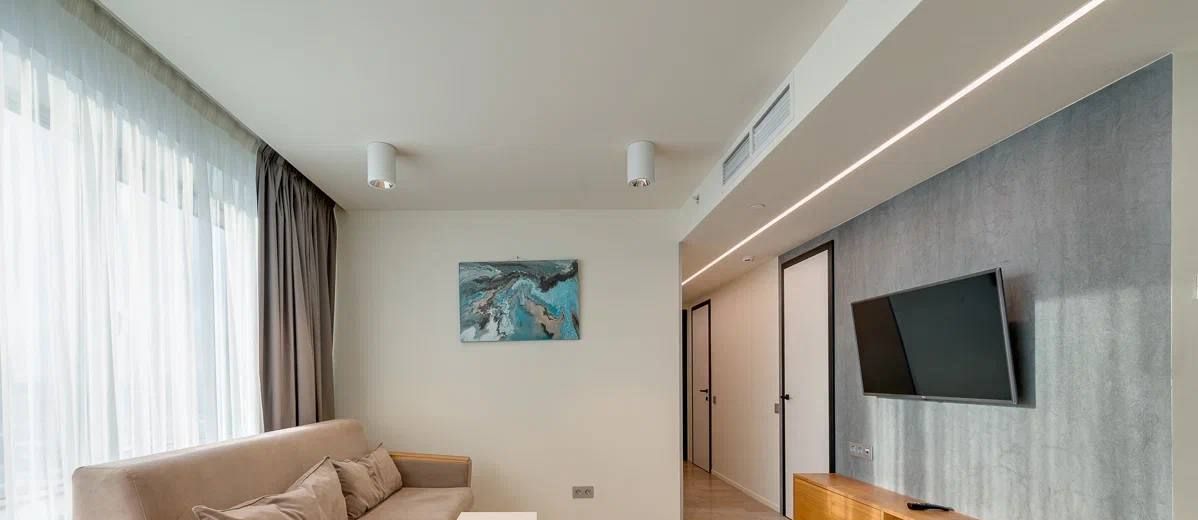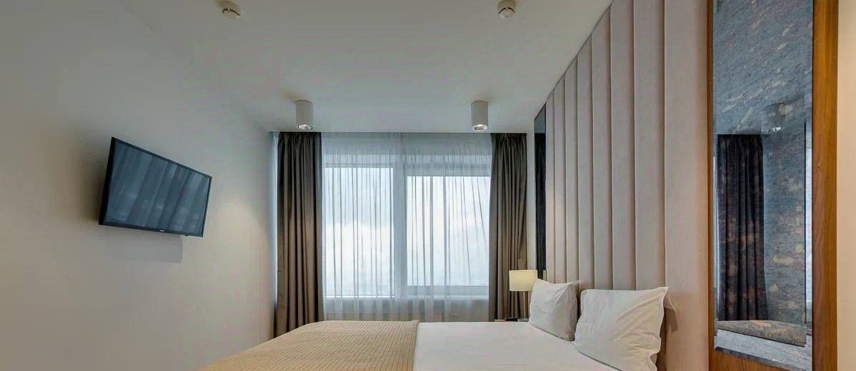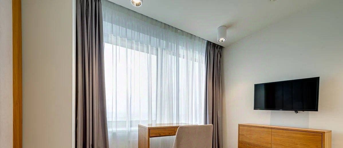 В квартире сделан современный евроремонт. Просторные комнаты обставлены стильной мебелью, которая идеально дополняет интерьер. На кухне вы найдёте всё необходимое: от посудомоечной машины до холодильника. В каждой комнате установлен кондиционер, в каждой комнате — телевизор. В маленькой комнате можем оборудовать на Ваше усмотрение по согласованию, например детскую или кабинет. Ванная комната оборудована ванной, что поможет расслабиться после трудового дня.