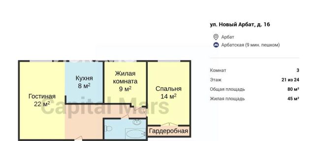 3-к кв. Москва ул. Новый Арбат, 16 (80.0 м²)
