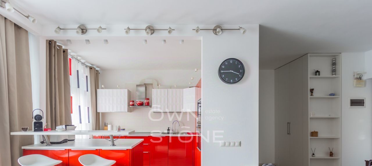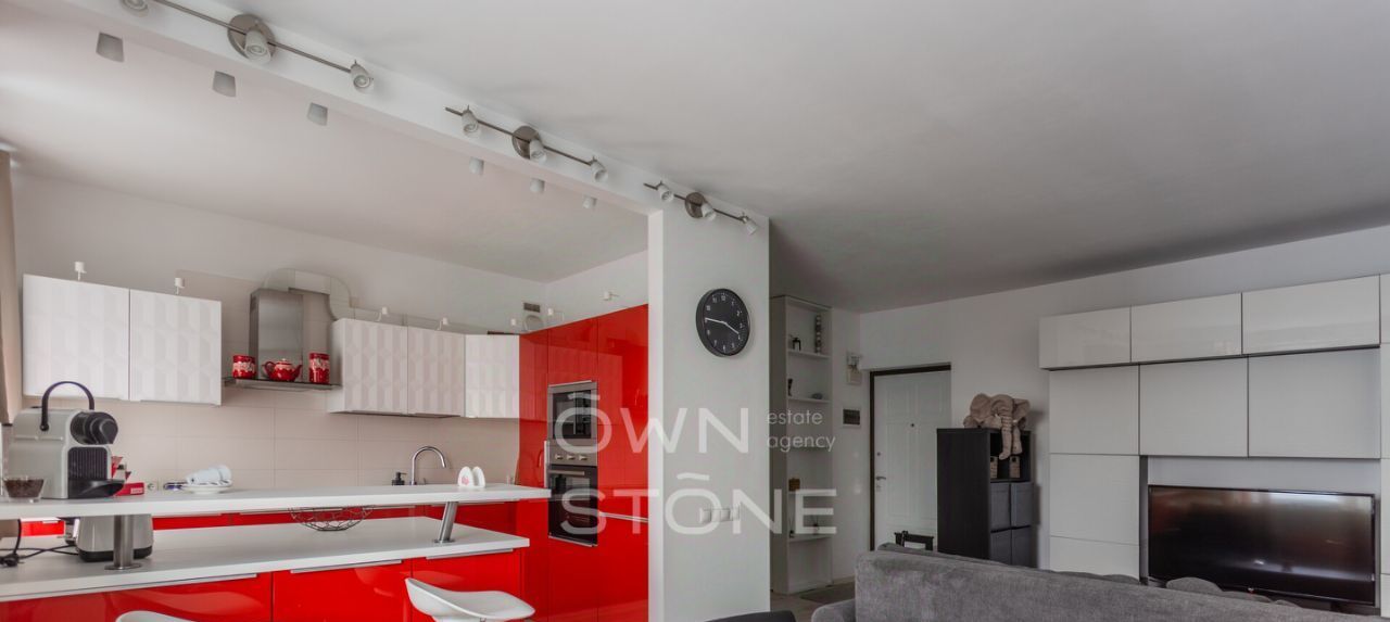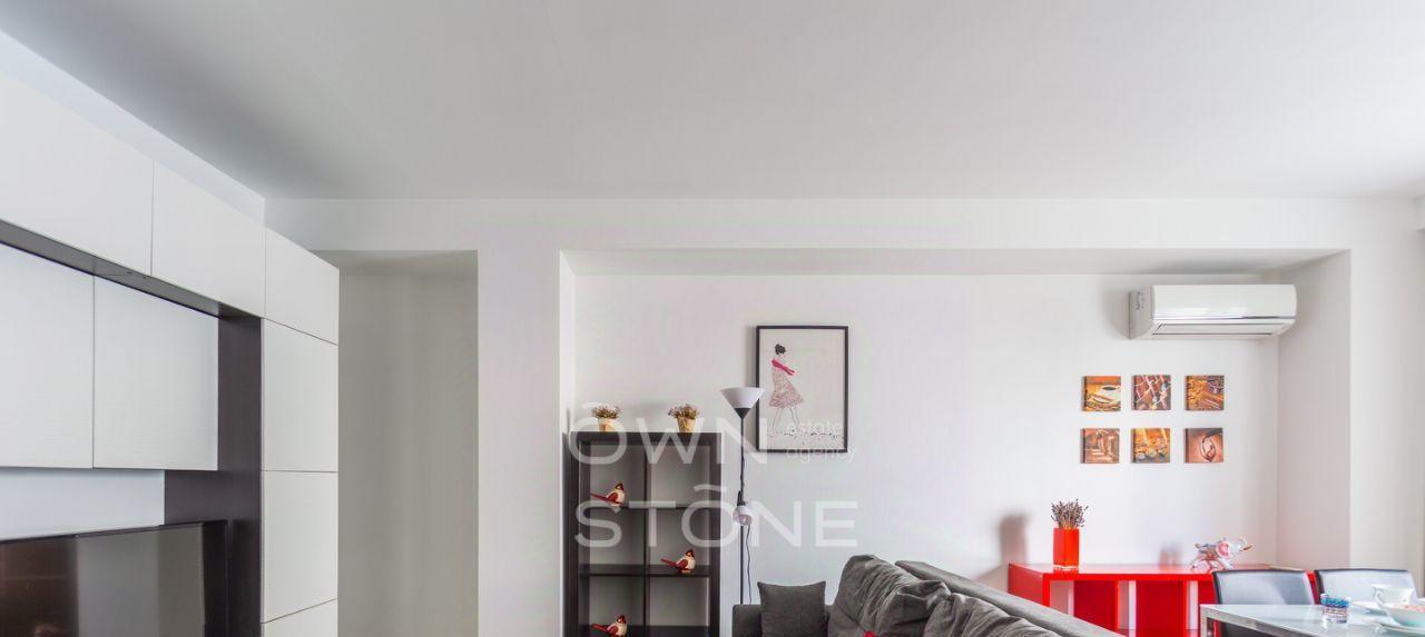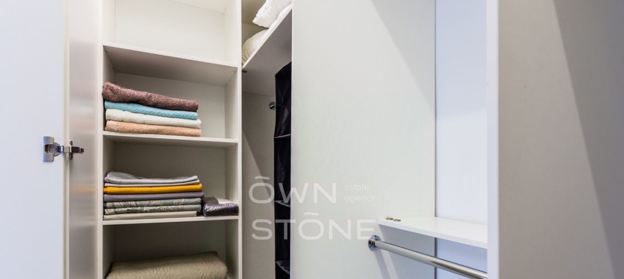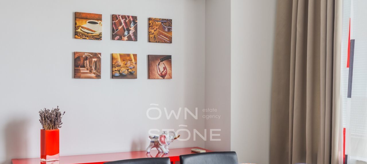Планировка: просторная кухня-гостиная с обеденной зоной, спальня с гардеробной, жилая комната (можно использовать как спальню или кабинет), совмещенный санузел с ванной, прихожая. Квартира мебелирована, укомплектована необходимой бытовой техникой. Есть теплый пол и кондиционеры. Огороженная охраняемая территория. Есть возможность оформить резидентскую парковку.