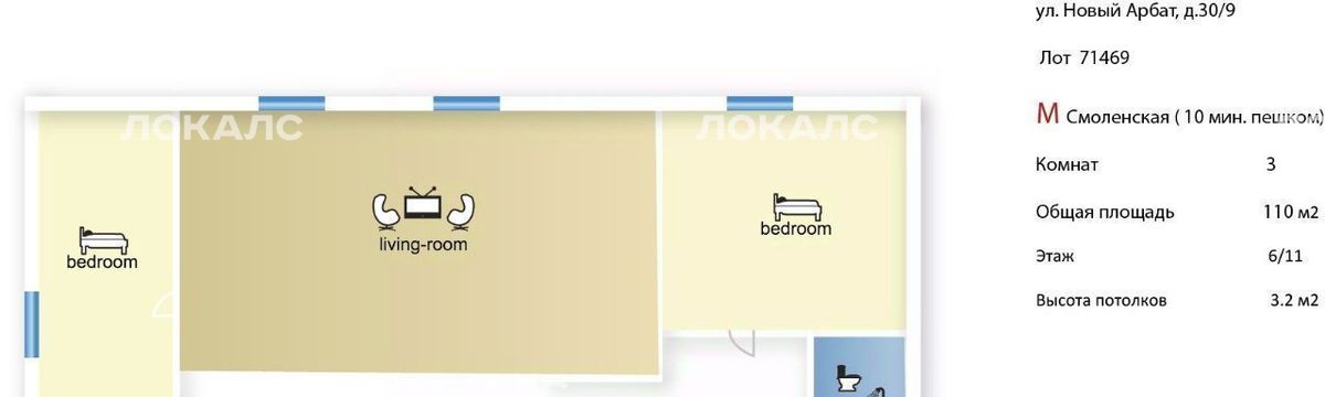 3-к кв. Москва ул. Новый Арбат, 30/9 (110.0 м²)