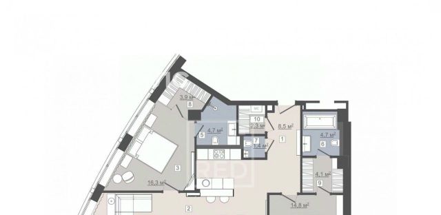 Площадь апартамента 110 м², полностью меблирован и оснащен современной техникой. Готов для комфортной жизни с первых дней.