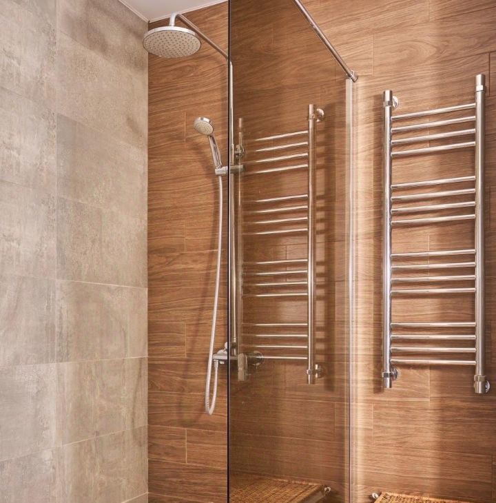 - Ванная комната с душевой и санузлом выполнена в стиле эко спа, отдельно предусмотрен гостевой санузел.