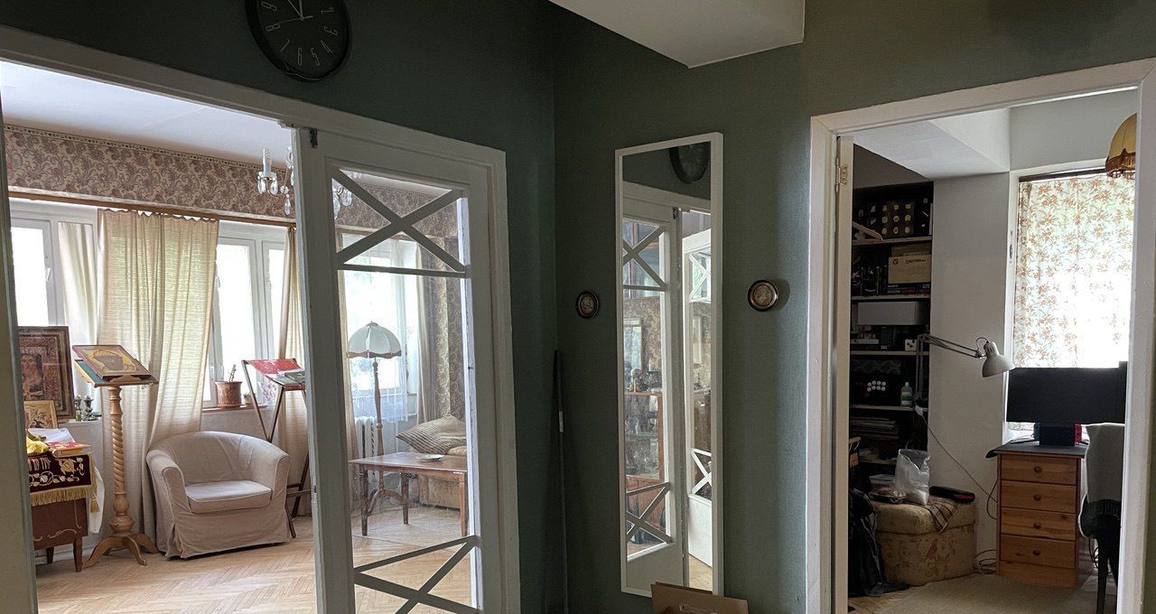 Расположена на 2 этаже дома серии 1МГ-601-Ж, торцевая, окна на 3 стороны в зеленый двор. Общая площадь 72 кв. м, жилая 47 кв. м., 3 изолированные комнаты, просторный холл. Лоджия застекленная на всю ширину квартиры, 6 кв. м. Санузел раздельный. Ремонт косметический, делали для себя. Паркетные полы. Состояние квартиры — "заезжай и живи". Общий холл на 3 квартиры, соседи тихие. В общем холле шкафы для хранения. Консьерж.