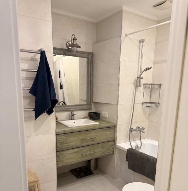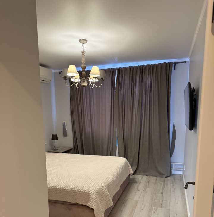 Юлия. квартира с евроремонтом, большой санузел, две изолированные комнаты с гардеробной. Вход в кухню через гостиную. Бойлер, кондиционеры. Большой шкаф в коридоре. Светлая, уютная квартира. У собственника есть пожелания к жильцам. Строго без животных.