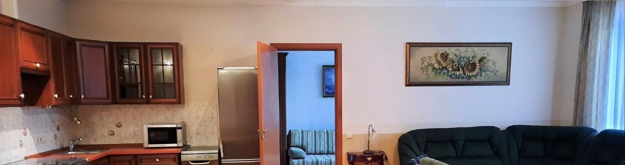 Просторная и обустроенная квартира с хорошим ремонтом в монолитном доме индивидуальной застройки 2003 года. Квартира с отличной планировкой: огромная кухня-гостиная 40 кв.м, 2 изолированные спальни, 2 больших санузла, просторный холл-коридор. Ремонт добротный и качественный. Квартира полностью укомплектована мебелью и всей необходимой техникой для комфортного проживания (посудомоечная машина, холодильник, СМА, печь СВЧ и т.д.).