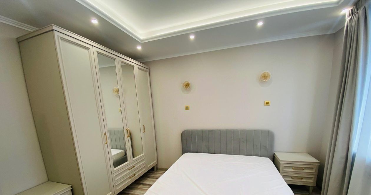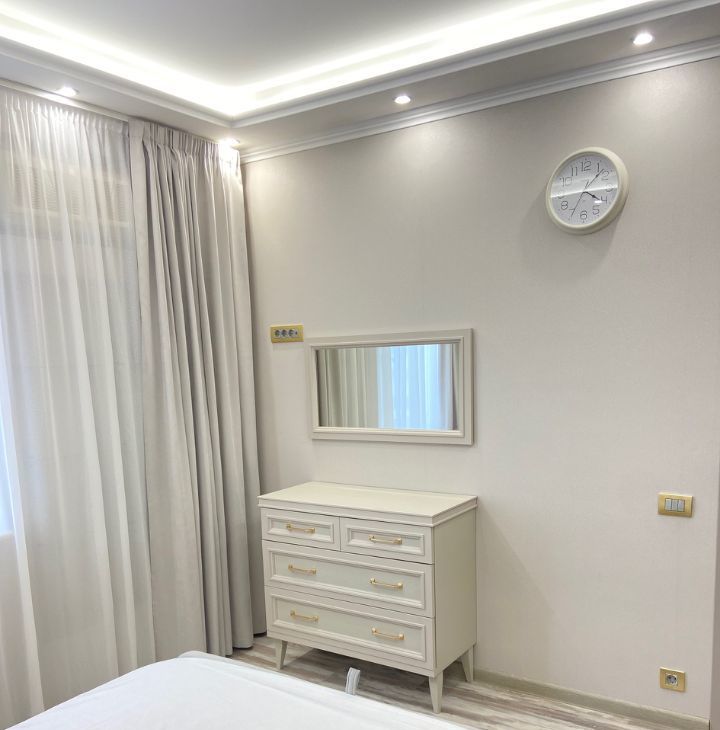 Квартира свежая после ремонта, новая мебель. В квартире еще никто не жил. Готовы принять семью: есть комната с двухспальной кроватью 160*200. В детской комнате кровать 120*200, два шкафа, письменный стол, тумба, прикроватная тумба, стул. Детская комната объединена с лоджией, что добавляет дополнительное пространство. В гостиной стоит уютный диван 3,5 м, камин, комод. В просторной гостиной можно проводить уютные семейные вечера и встречать гостей. В квартире 2 санузла.