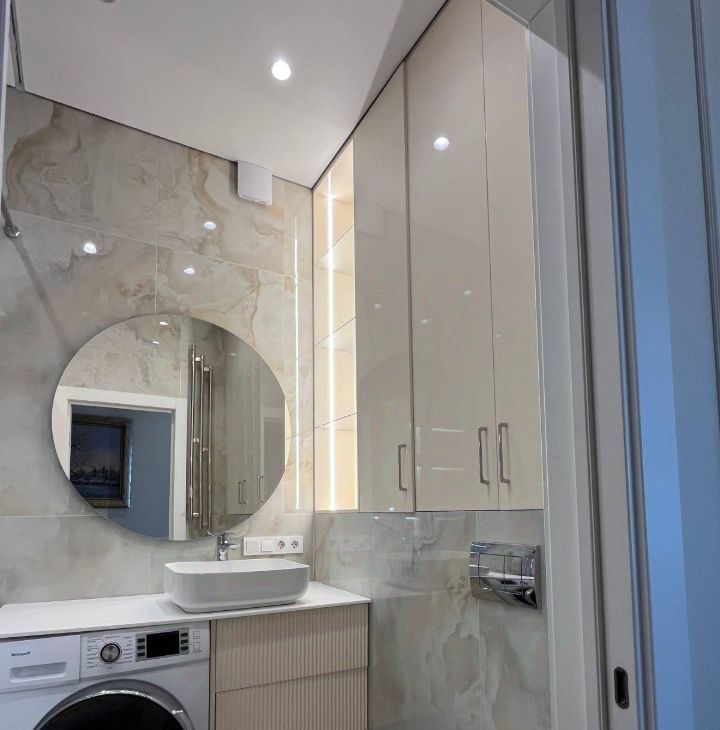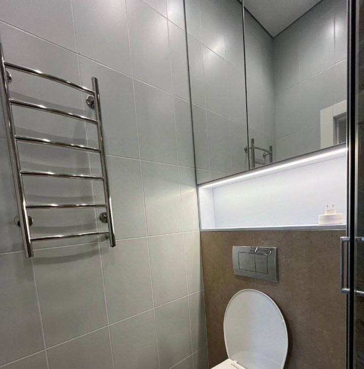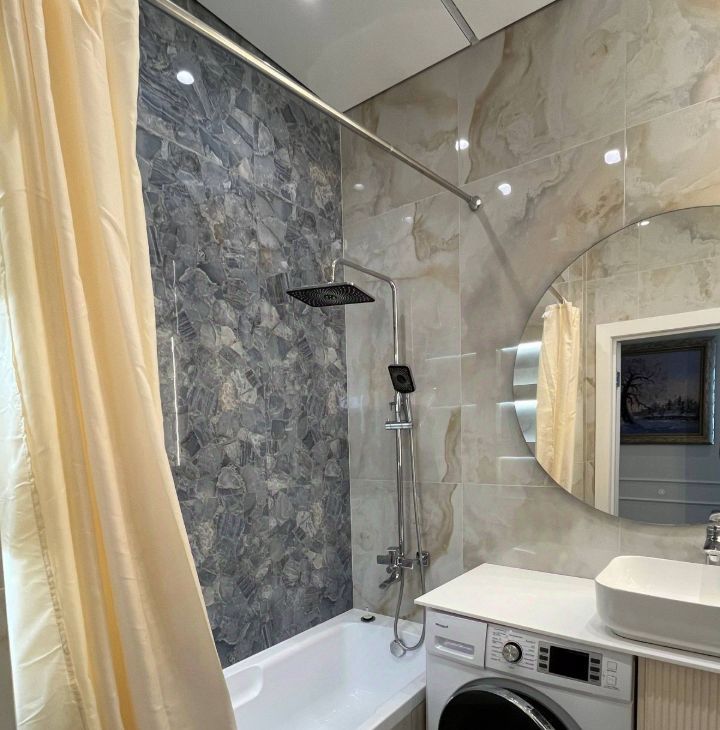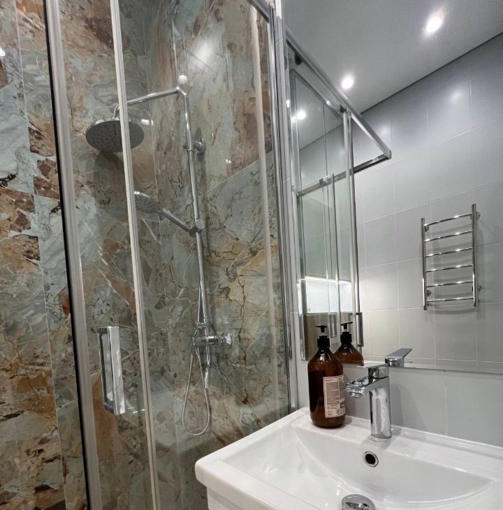 Кухня оборудована всей необходимой техникой, чтобы вы могли легко готовить свои любимые блюда. Ванные комнаты выполнены в современном стиле, что добавляет квартире стильный вид. В одной из ванных комнат установлена душевая кабина, где вы сможете расслабиться после рабочего дня.