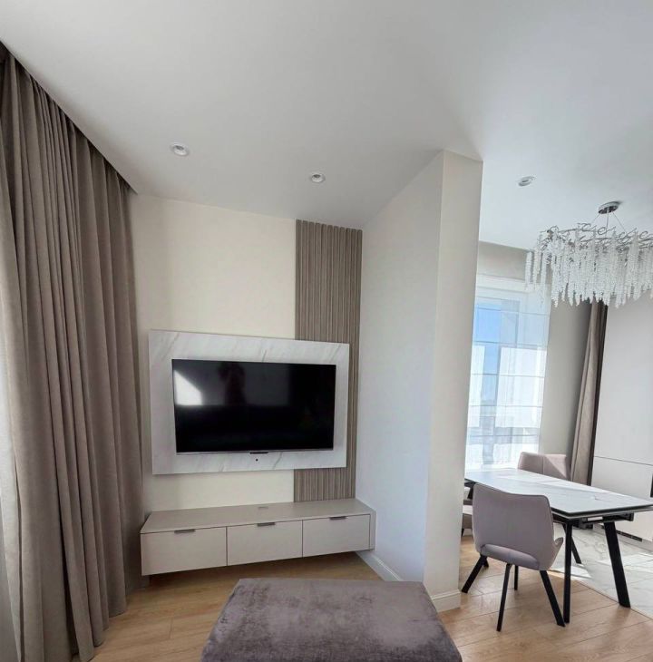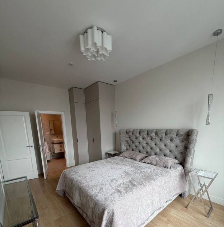 Интерьер квартиры выполнен с использованием высококачественных материалов и включает три санузла. Пространство полностью меблировано и оснащено всей необходимой бытовой техникой: вместительные шкафы-купе, комфортабельный диван-кровать в гостиной, большая двуспальная кровать в главной спальне и дополнительная кровать во второй спальне. В вашем распоряжении холодильник, микроволновая печь, варочная панель, духовой шкаф, посудомоечная и стиральная машины. Для вашего удобства установлены кондиционеры в каждой комнате, полы с подогревом, телевизор и проведён высокоскоростной интернет (Wi-Fi).