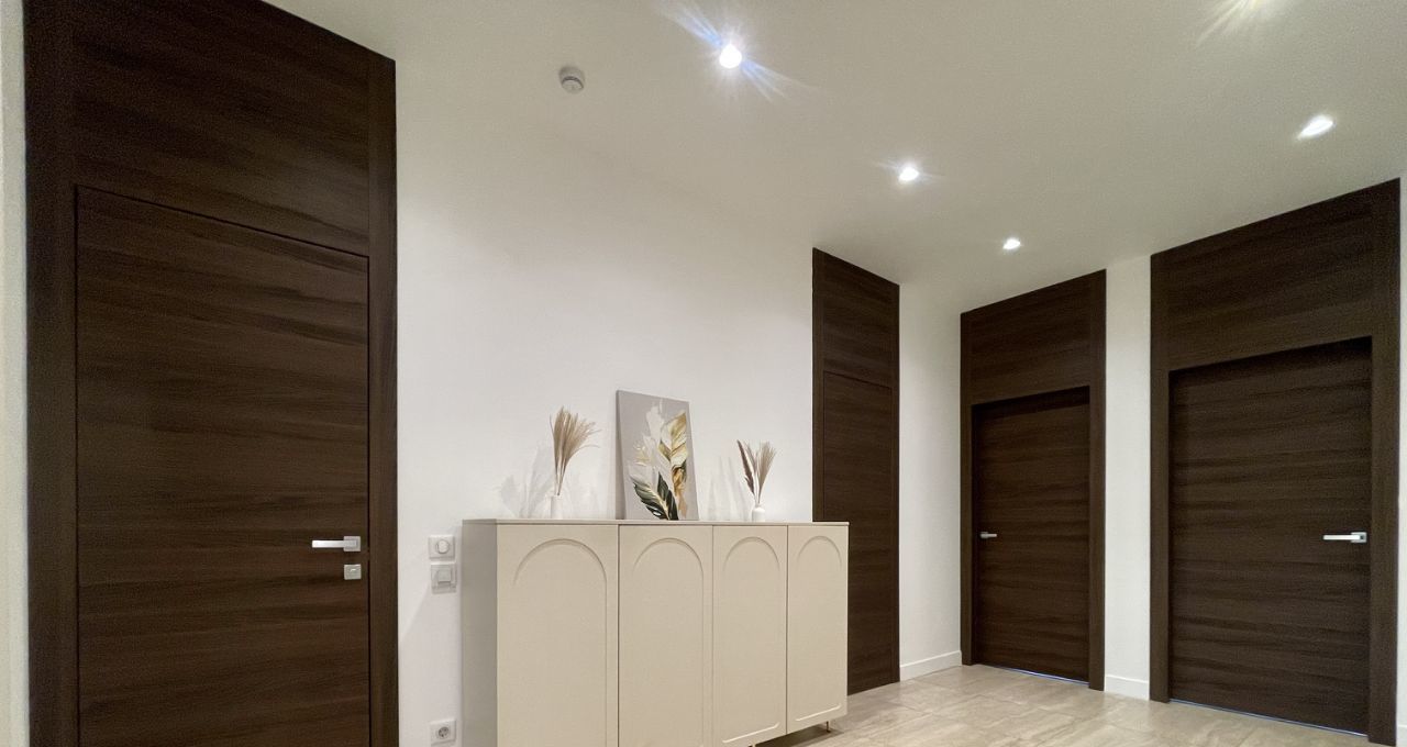 Планировкой квартиры предусмотрено: кухня-гостиная с выходом на лоджию, 2 спальни, 2 санузла, просторный коридор с гардеробной.