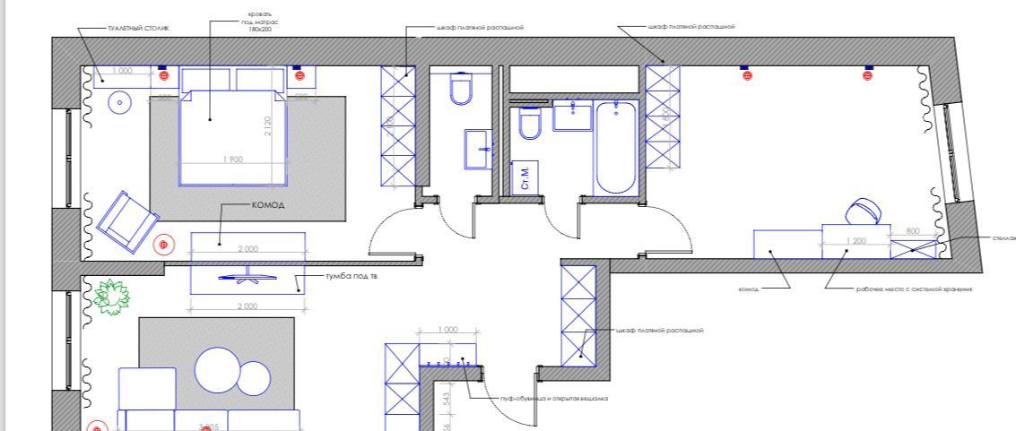 Санузел и ванная комната раздельные. В квартире предусмотрены продуманные системы хранения.