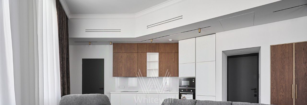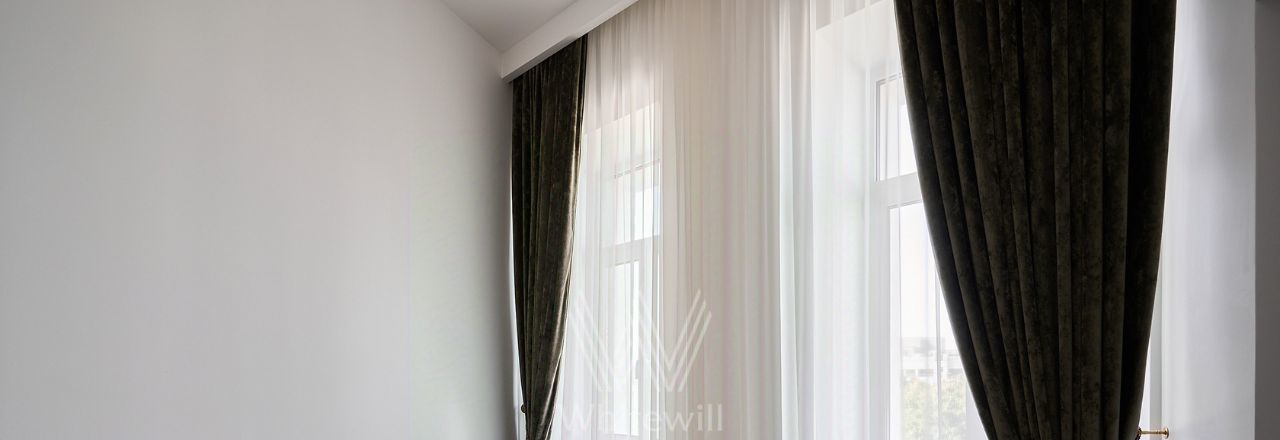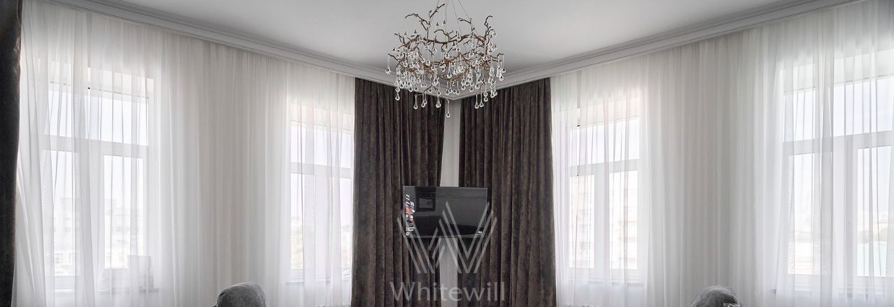 Самая редкая планировка в доме. Спланирована угловая гостиная с 4-мя окнами, спальня с ванной комнатой, вторая спальня, ванная комната, встроенный гардероб. Спальни разделены гостиной. Апартамент полностью укомплектован современной мебелью, установлена встроенная кухня с премиальной техникой. В каждой комнате кондиционирование системой фанкойл.