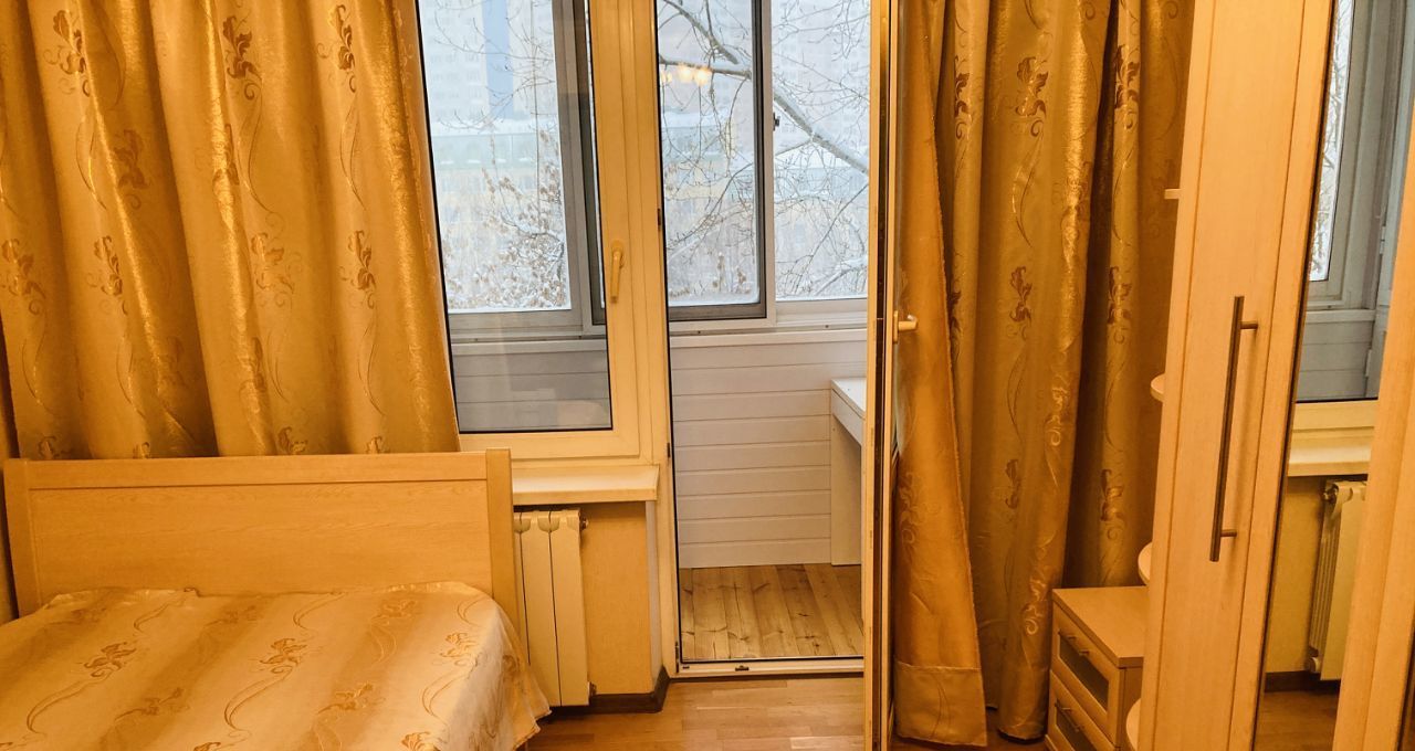 Комната 9 м - двухспальная кровать, угловой шкаф для одежды. Выход на застекленный балкон.