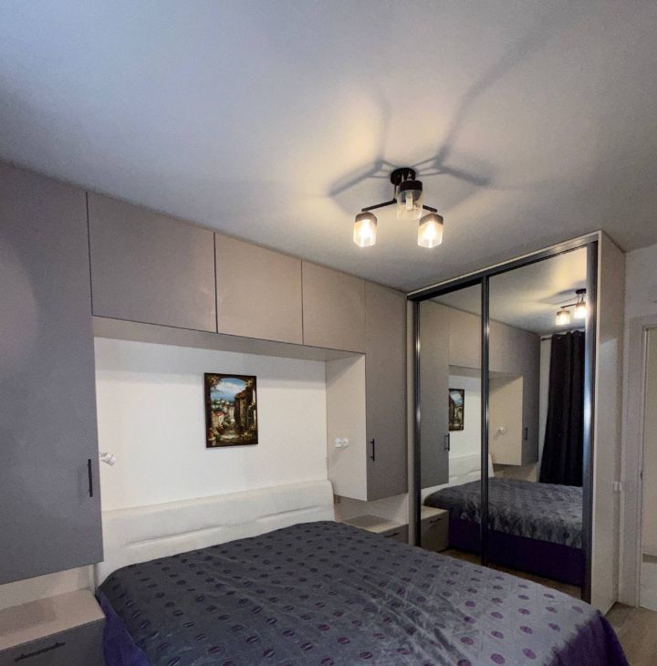 Две изолированные спальни и просторная кухня-гостиная, с/у совмещен, кладовка, много мест для хранения.
