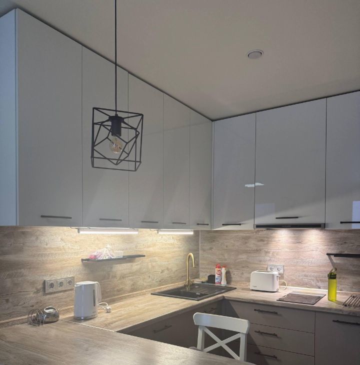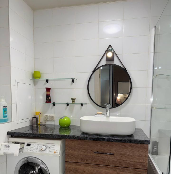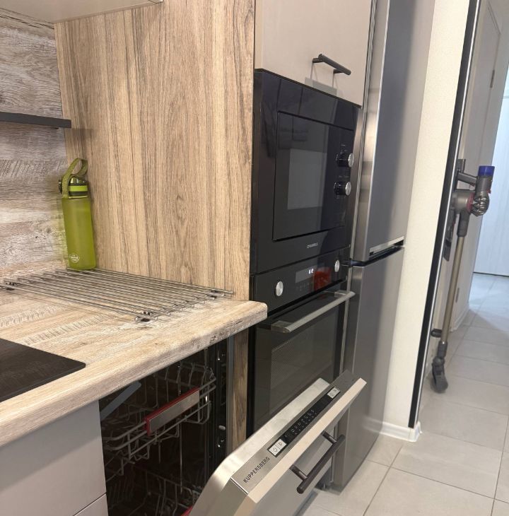 Квартира оснащена всей необходимой техникой (посудомоечная и стиральная машины, микроволновка, духовка, чайник, холодильник, водный фильтр, измельчитель пищевых отходов) и мебелью!
