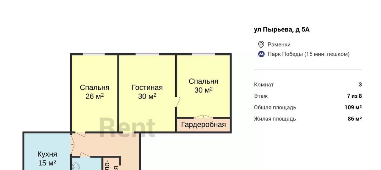 3-к кв. Москва ул. Пырьева, 5А (109.0 м²)