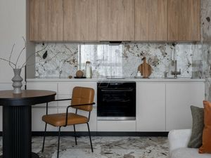Квартира выполнена в современном стиле с качественным ремонтом, где использованы только лучшие европейские материалы. Просторная кухня полностью укомплектована встроенной бытовой техникой: посудомоечной машиной, электрической варочной поверхностью, духовым шкафом с функцией СВЧ и холодильником. Также в квартире есть два раздельных санузла — один с душевой кабиной, другой с уютной ванной, а также отдельная постирочная с бойлером.