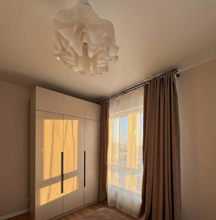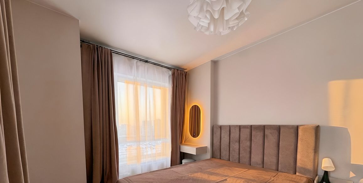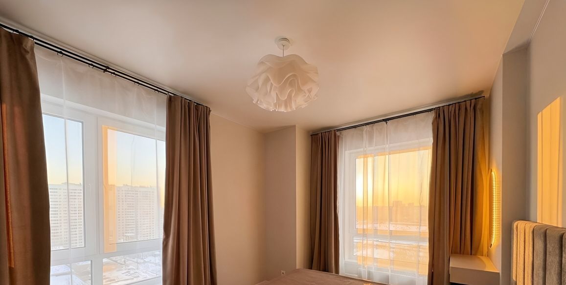Площадь 49 м², 17 этаж. Угловая спальня — много естественного света и панорамные виды.