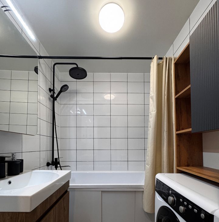 Жилой комплекс полностью сдан, без строительных работ. Тихий район с развитой инфраструктурой: магазины, кафе, сервисы — в шаговой доступности.