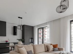 В апартаментах три комнаты с панорамными окнами: кухня с техникой Smeg и Bork, совмещена с залом с телевизором Samsung Frame и Яндекс Алисой, спальня с двуспальной кроватью и отличными матрасом, вторая спальня с 1,5 спальной кроватью, рабочей зоной и односпальной кроватью, которую можно использовать как диванчик, зону отдыха.