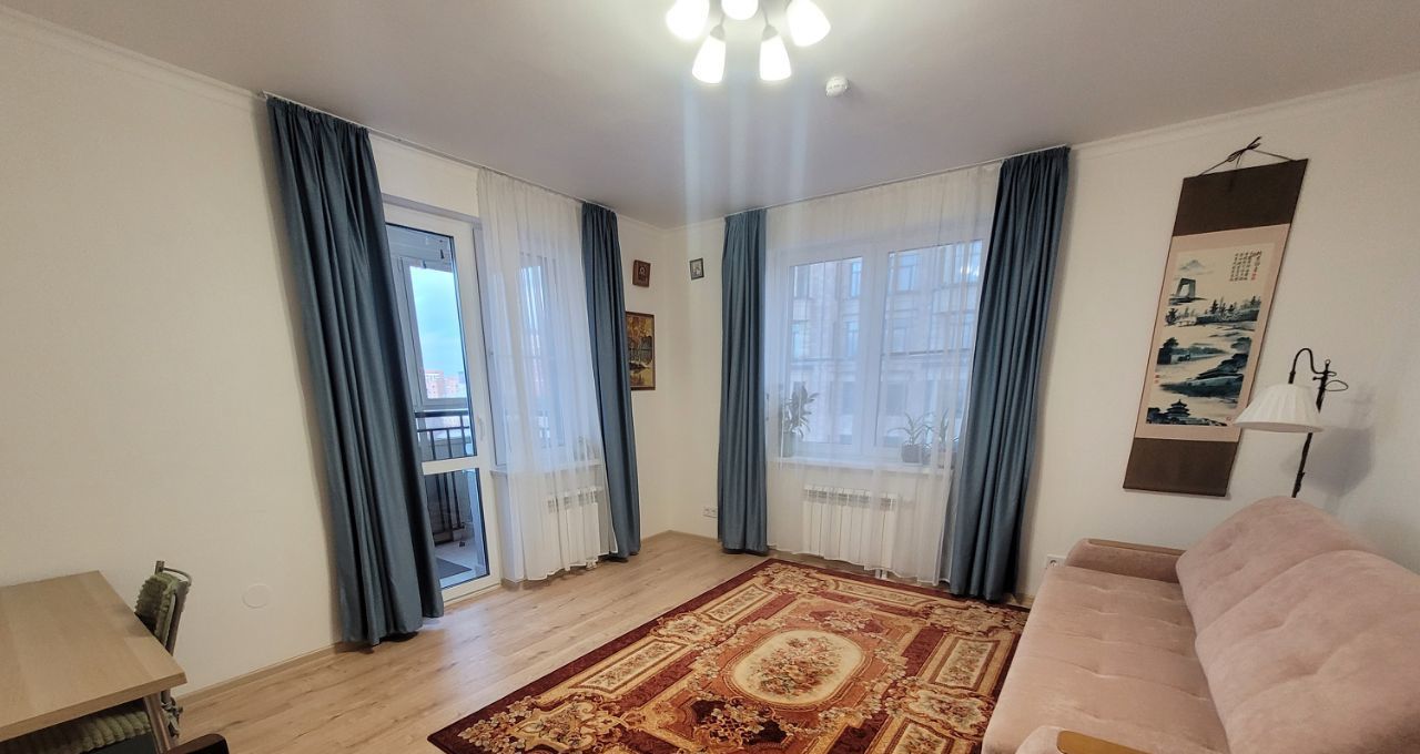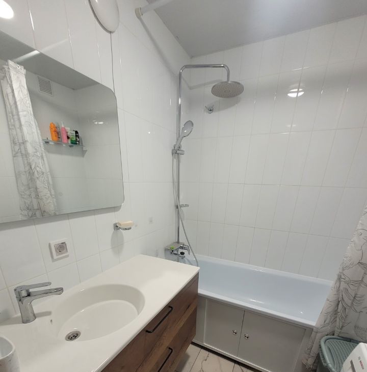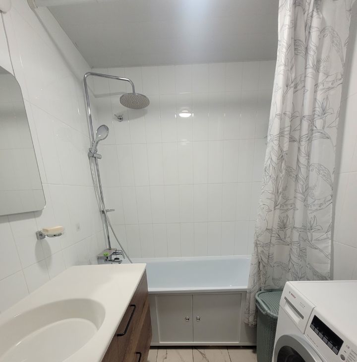 Просторная ванная комната оснащена удобной ванной. Также имеется уютная лоджия, где можно наслаждаться видом на город.