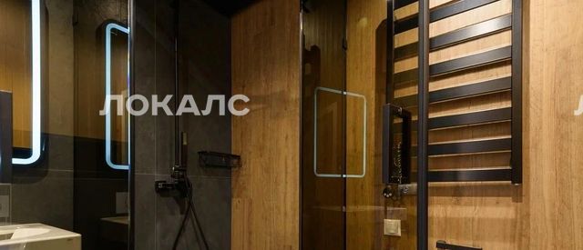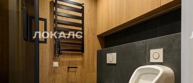 - санузел 2 (4 кв м) выполнен в темных тонах, установлена душевая кабина, писуар, стиральная машинка, встроенная мебель