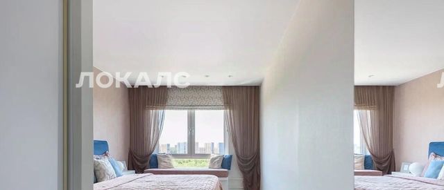 - спальня (18,5 кв м) с гардеробной, огромная кровать размером 2м на 2м (с коробом для хранения), навесные прикроватные тумбы, диванчик на подоконнике, шторы