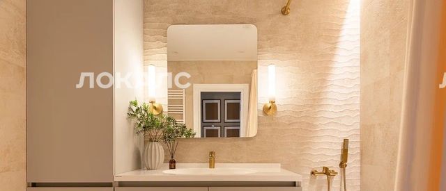 - санузел 1 (4,5 кв м) выполнен в светлых тонах, испанская плитка Parselonosa, ванна, столешница со встроенной мойкой из камня, шкаф-пенал