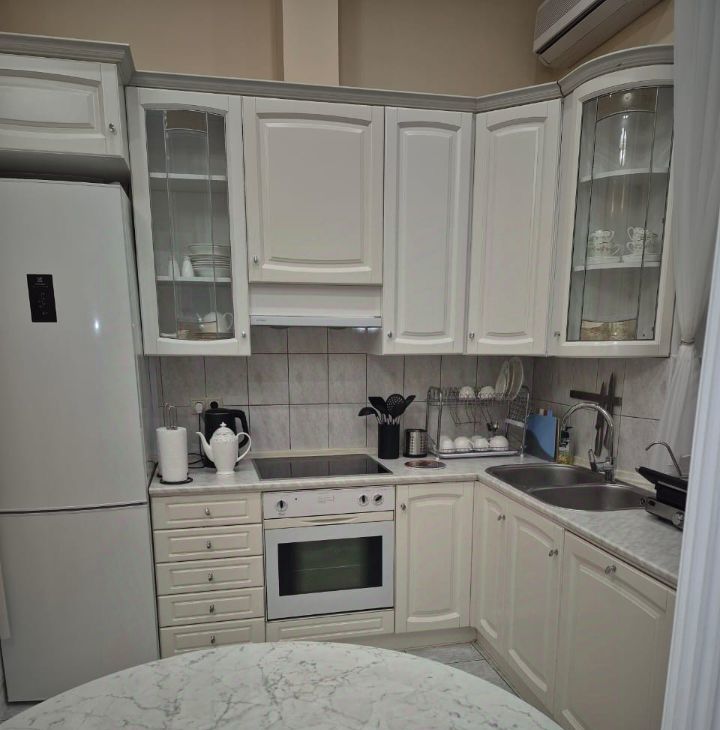 Встроенная кухня со всей необходимой для комфортного проживания бытовой техникой.