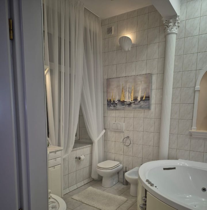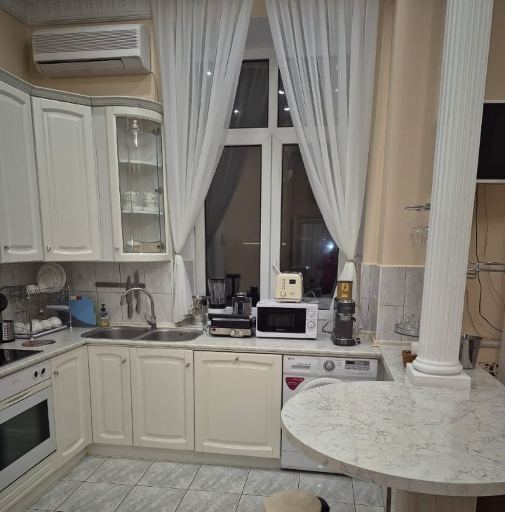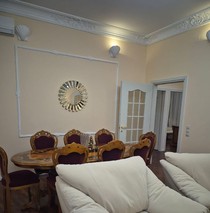Функциональная планировка квартиры: гостиная, кухня-столовая, 2 спальные комнаты, 2 совмещенных с/у (один с джакузи, а второй с душевой кабиной), гардеробная комната, прихожая, 4 балкона. Потолки 3,2м. Квартира полностью меблирована и укомплектована всей необходимой техникой известных брендов для комфортного проживания. Панорамный вид из окон на Храм Христа Спасителя. Ремонт в классическом стиле.