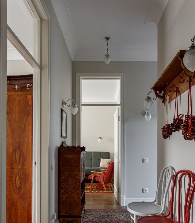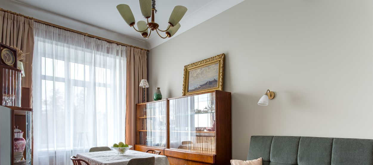 Редкая по красоте исполнения и атмосфере квартира в историческом доме 1926 года постройки. В квартире выполнен новый качественный ремонт в старомосковском стиле . В отделке использованы качественные материалы, а предметы интерьера и мебели тщательно отреставрированы. Квартира сохранила атмосферу старой Москвы середины 20 века, но вместе с тем полностью оборудована современной бытовой техникой (установлены посудомоечная, стиральная и сушильная машины). Высокие дверные проемы в белом цвете со стеклянными фрамугами расширяют пространство и наполняют квартиру светом.