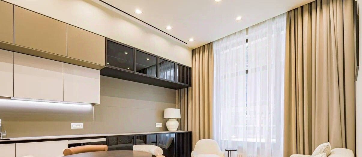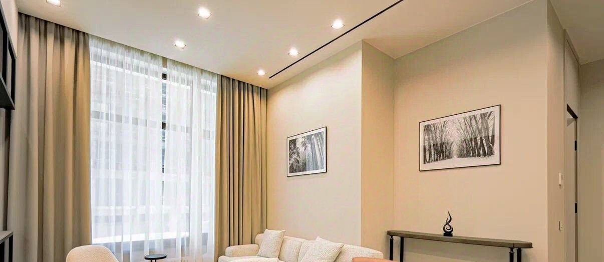 Квартира оборудована всей нет ходимой мебелью и техникой, качественные экологичные материалы, премиальная отделка и высокие потолки создают уют и пространство