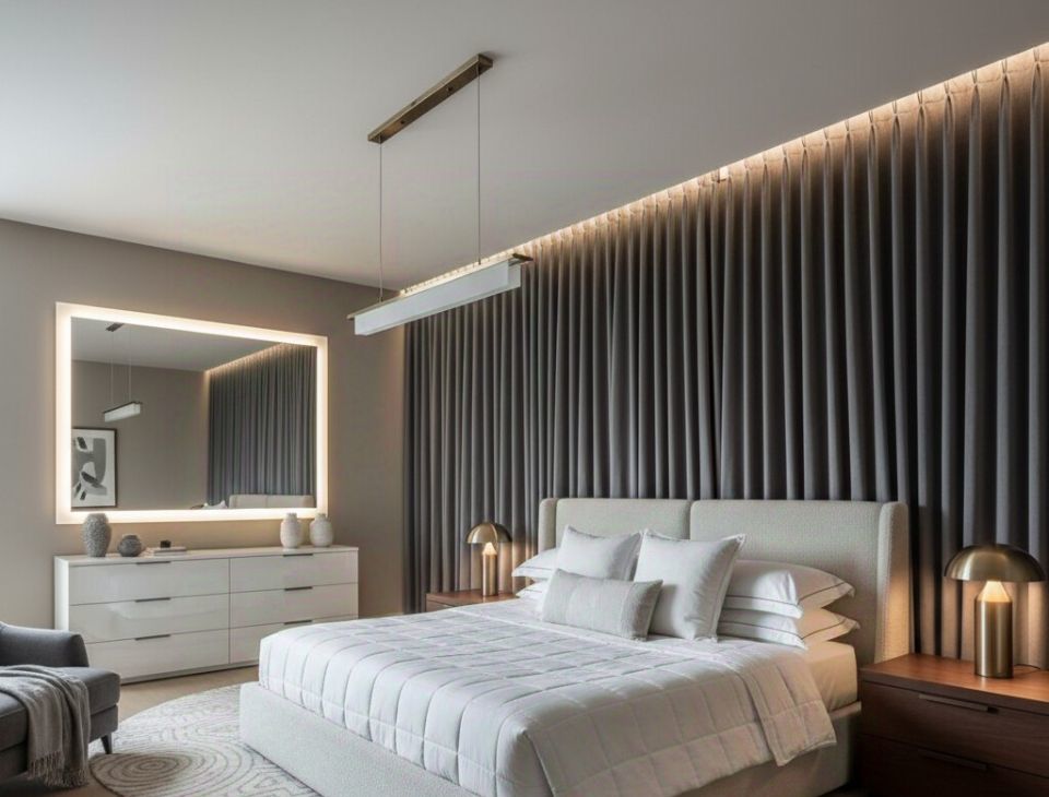 мягкий свет проникает через панорамные окна;
