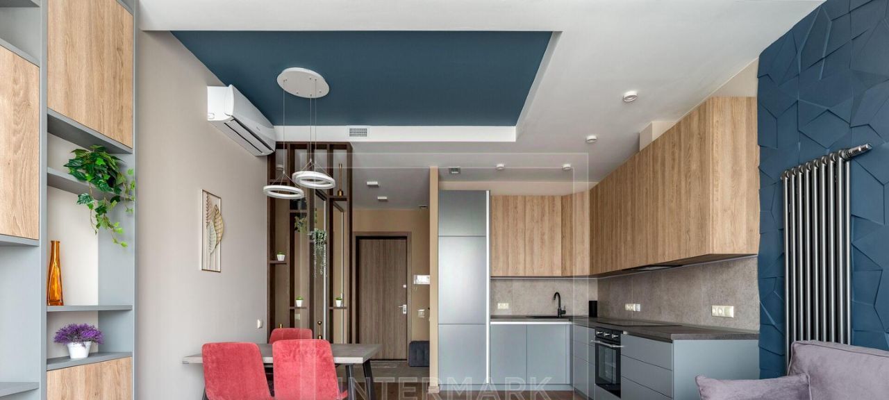 В квартире: С мебелью, Парковка, Посудомоечная машина, Стиральная машина, Теплые полы, Кондиционер, Видеонаблюдение, Охрана, Пожарный выход, Интернет, Европланировка, Ванна, Интерьер в современном стиле, Гардеробная комната, Кухонная мебель, Окна на улицу, Окна во двор