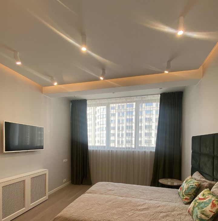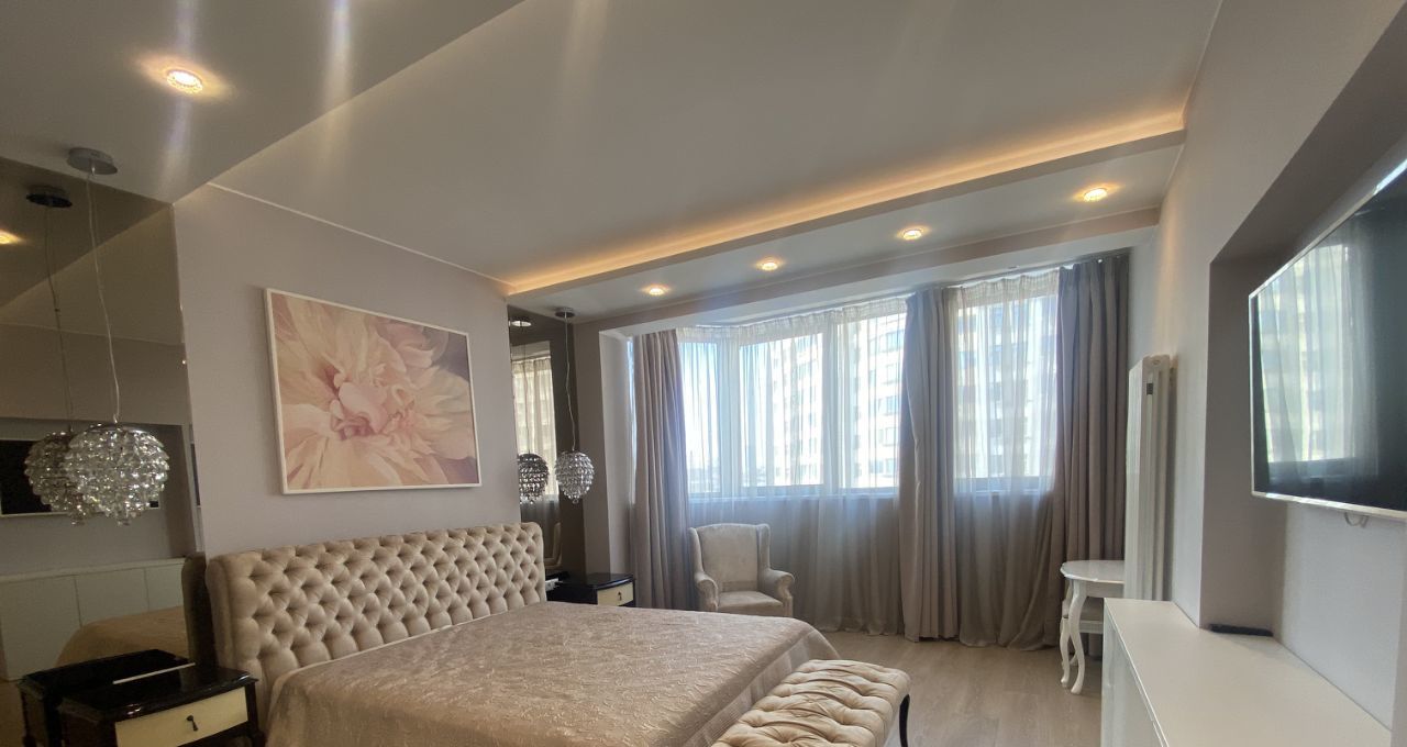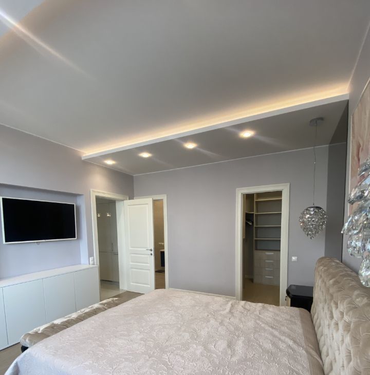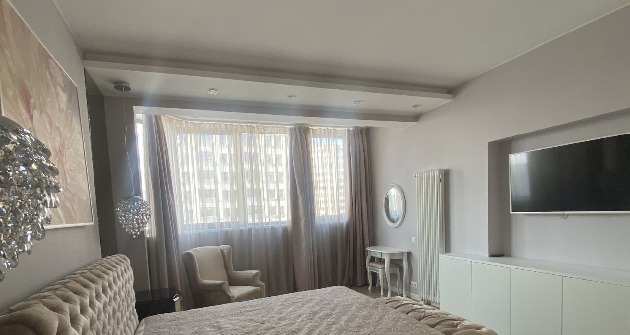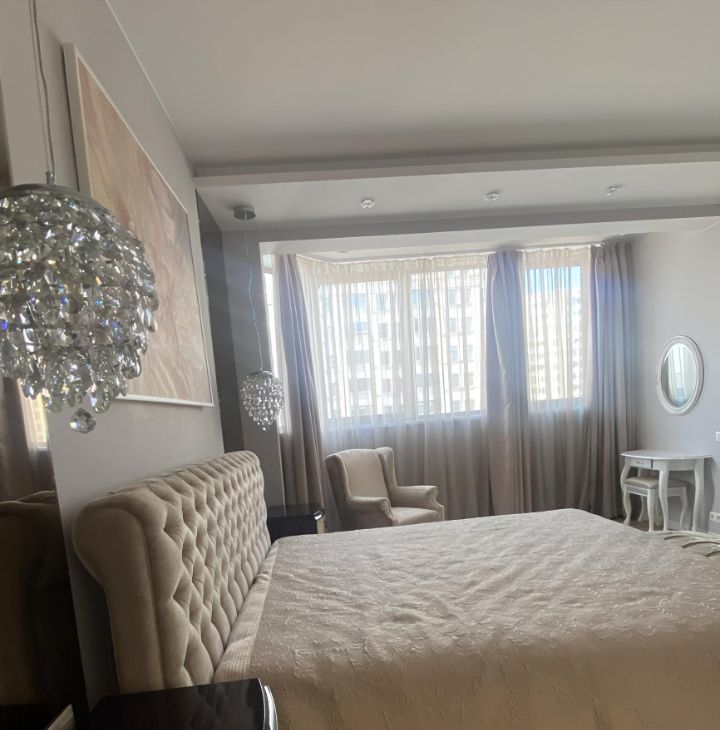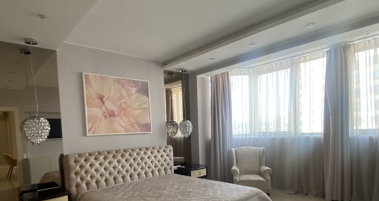 Функциональная планировка включает в себя кухню-гостиную, две спальни, два санузла, три гардеробных. Большая просторная квартира с потолками 3м,