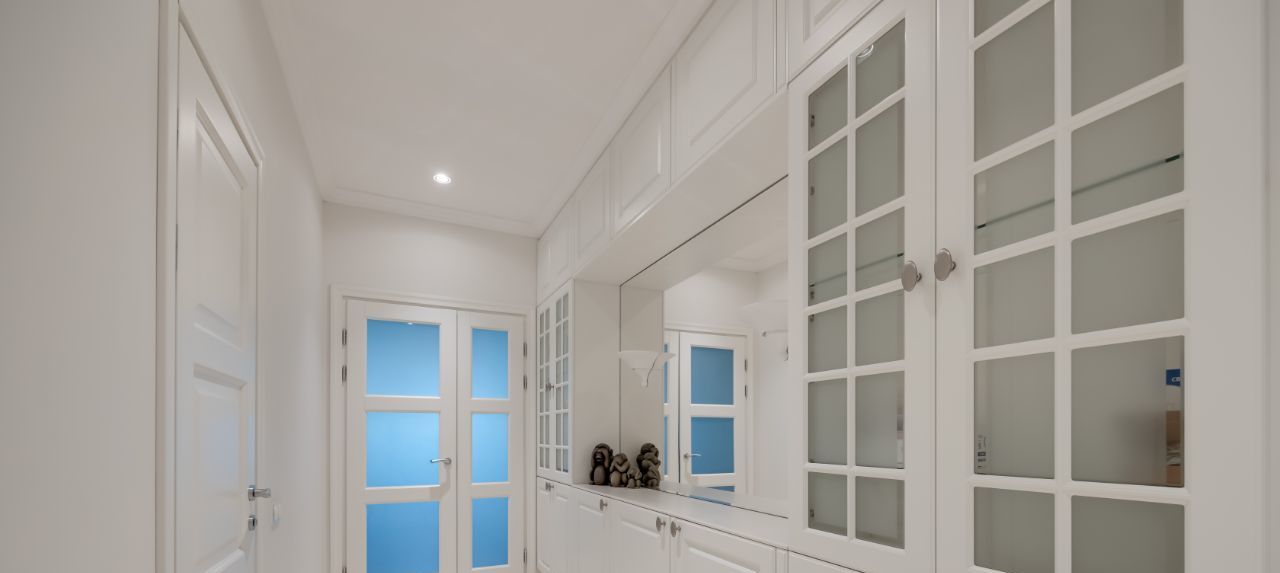 Квартира создавалась как продуманное пространство для комфортной жизни семьи. Планировка грамотно разделяет квартиру на приватный семейный блок и гостевой сервисный блок, что обеспечивает высокий уровень уединения и удобную организацию повседневной жизни.