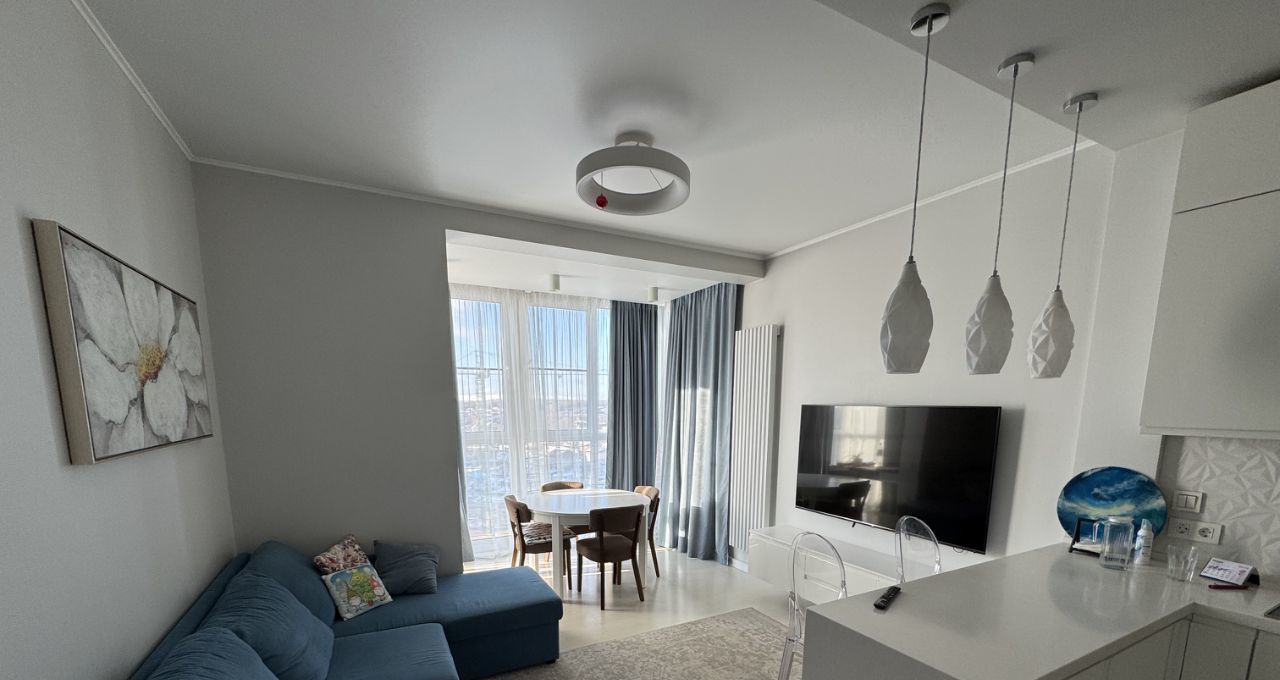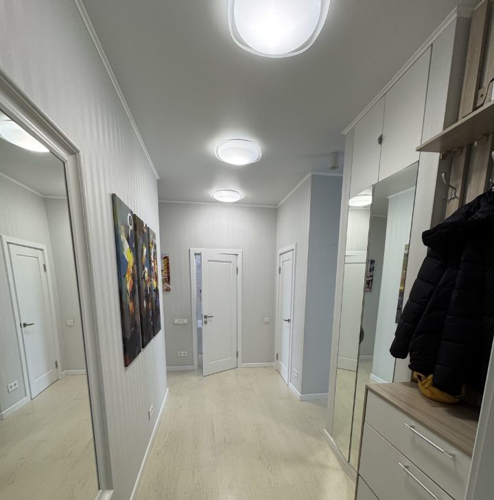 Сдаётся просторная трёхкомнатная (евро трешка) квартира с евроремонтом в современном доме 2017 года постройки. Общая площадь квартиры составляет 73 кв. м, высота потолков — 3 метра. Квартира расположена на 8 этаже 15-этажного монолитного дома. До станции метро "Прокшино" можно дойти пешком всего за 20 минут или доехать на общественном транспорте.
