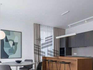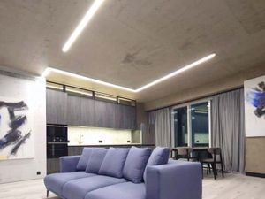 Функциональная планировка: кухня-гостиная с обеденной зоной, спальня с полноценной ванной комнатой, кабинет, гостевой с/у, вместительная гардеробная. Квартира полностью меблирована и оснащена бытовой техникой.