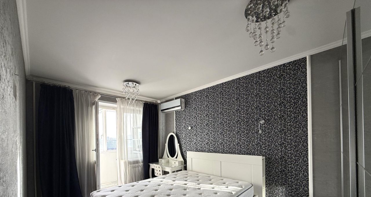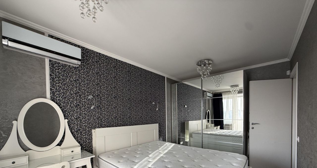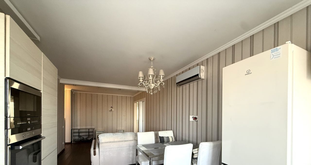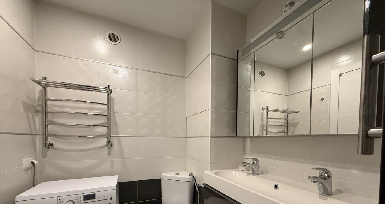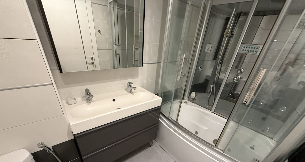 В квартире есть всё необходимое для комфортного проживания: кондиционер, холодильник, посудомоечная и стиральная машины. На кухне и в комнатах установлена современная мебель. Санузел совмещённый, оборудован душевой кабиной. Есть лоджия, где можно расслабиться и насладиться видом на город. Высота потолков — 2.64 метра.
