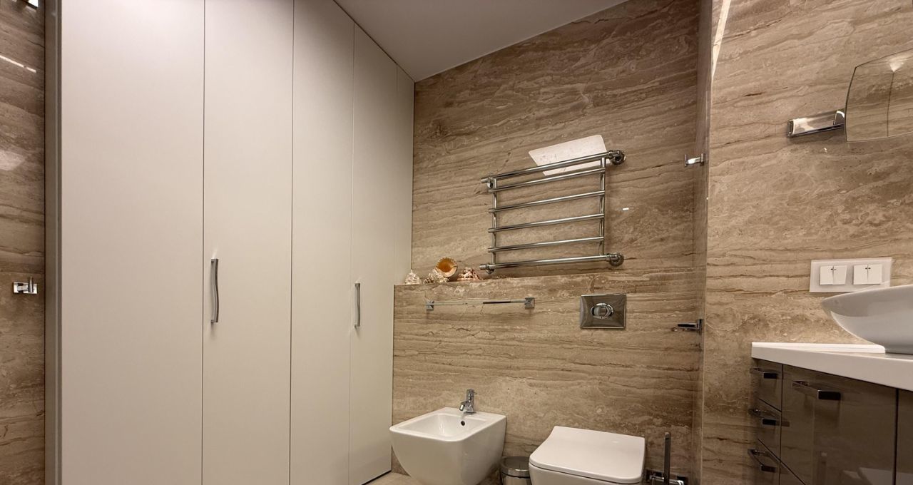 Квартира полностью готова к комфортному проживанию. В каждой комнате есть мебель, а на кухне — всё необходимое для готовки: современная бытовая техника, включая холодильник, посудомоечную машину и кондиционер. В ванной комнате установлена ванна, есть стиральная машина. В гостиной установлен телевизор для вашего досуга. Также в квартире проведён интернет, поэтому вы всегда будете на связи.