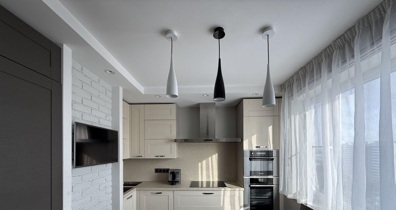 Сдаётся просторная 3-комнатная квартира с дизайнерским ремонтом. Общая площадь — 78 кв. м, жилая — 38 кв. м, кухня — 20 кв. м. Квартира находится на 13 этаже 17-этажного панельного дома 2000 года постройки. Высота потолков — 2,64 м. Окна выходят на улицу, что наполняет комнаты естественным светом.
