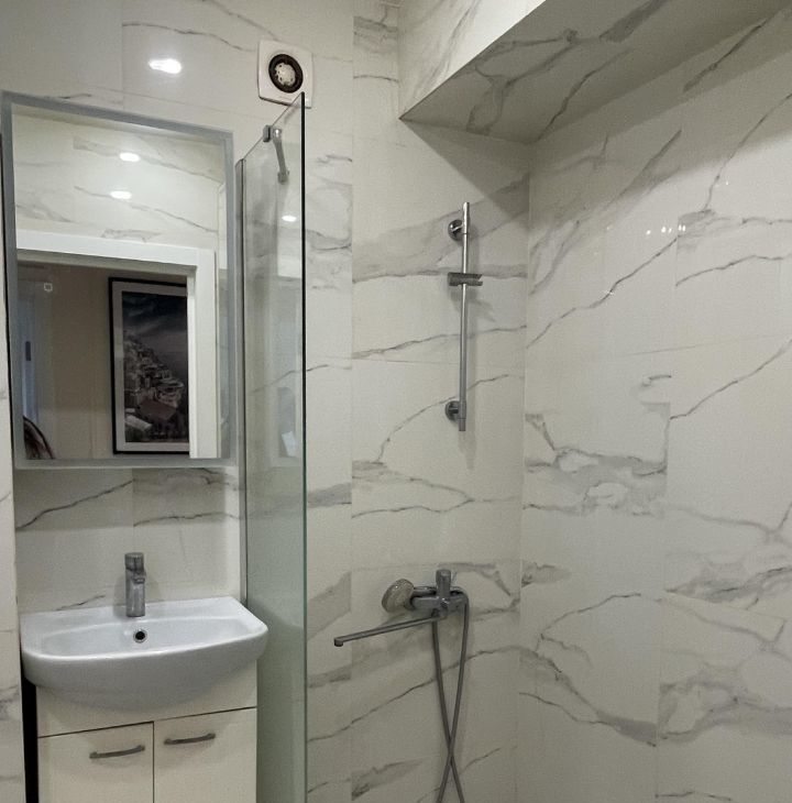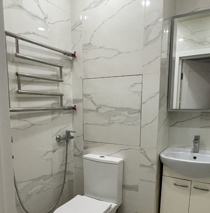 Санузел:Совмещен,Полностью обновлены с элитной керамикой и мебелью.