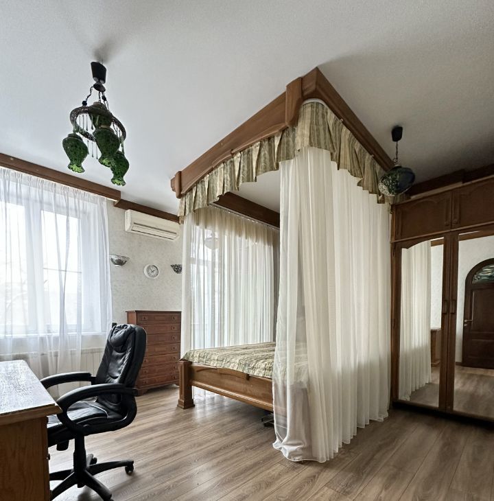 - двуспальная кровать, стол для работы, комод, шкафы для хранения, кондиционер (спальня 1);