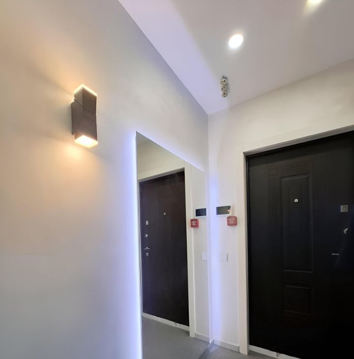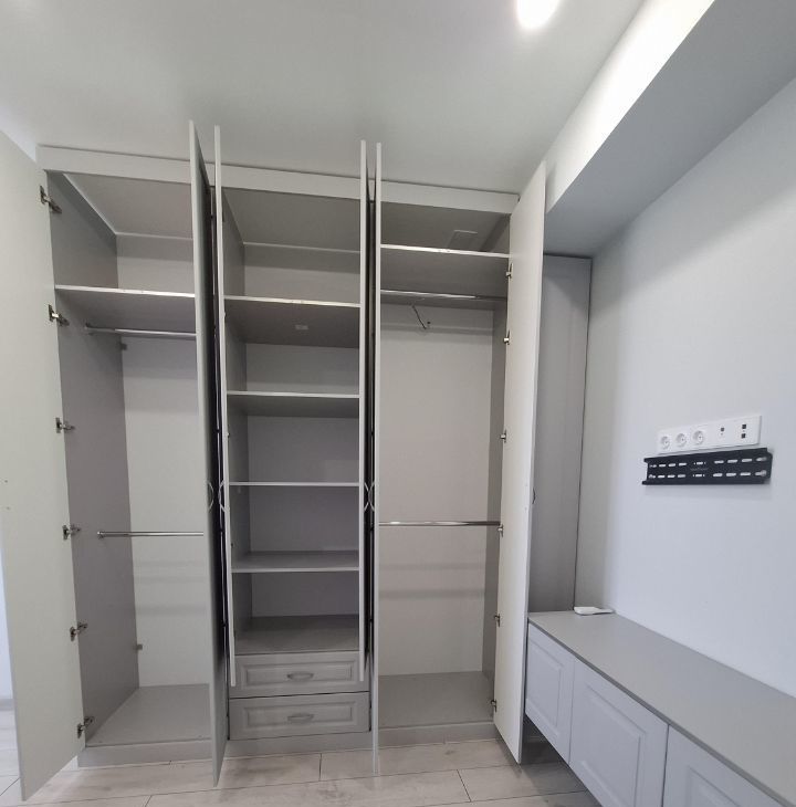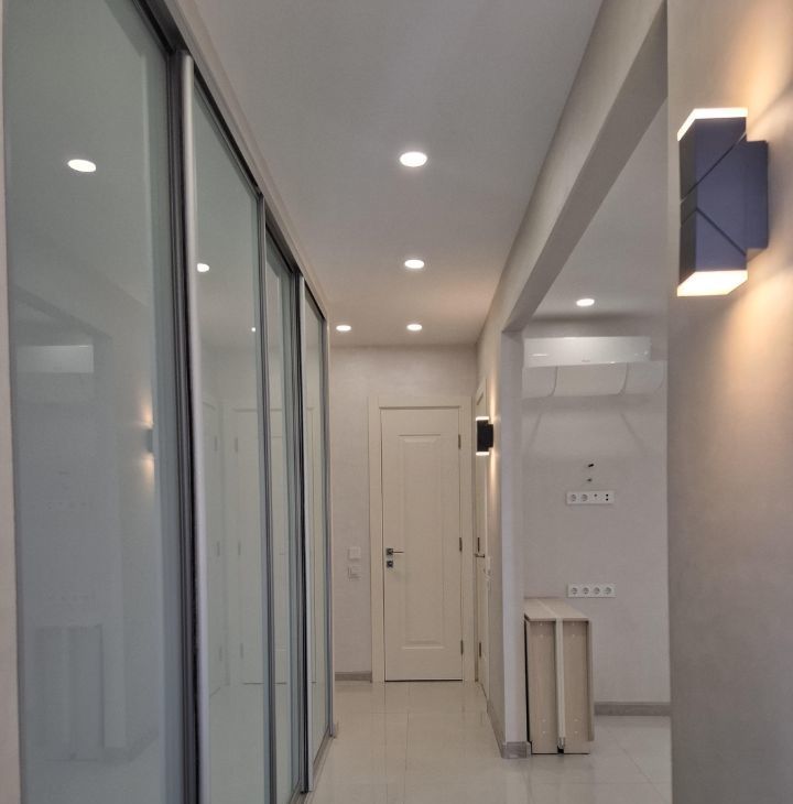 Холл со встроенным шкафом для хранения, зеркалом в пол